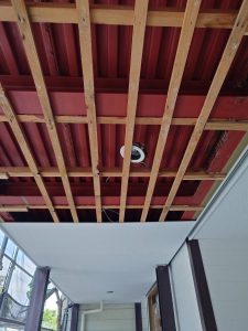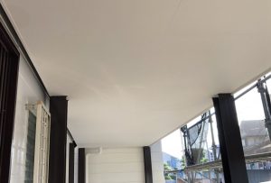軒天とは・・・外壁から外側に伸びている屋根の裏側の部分や、ベランダの裏側を指します。