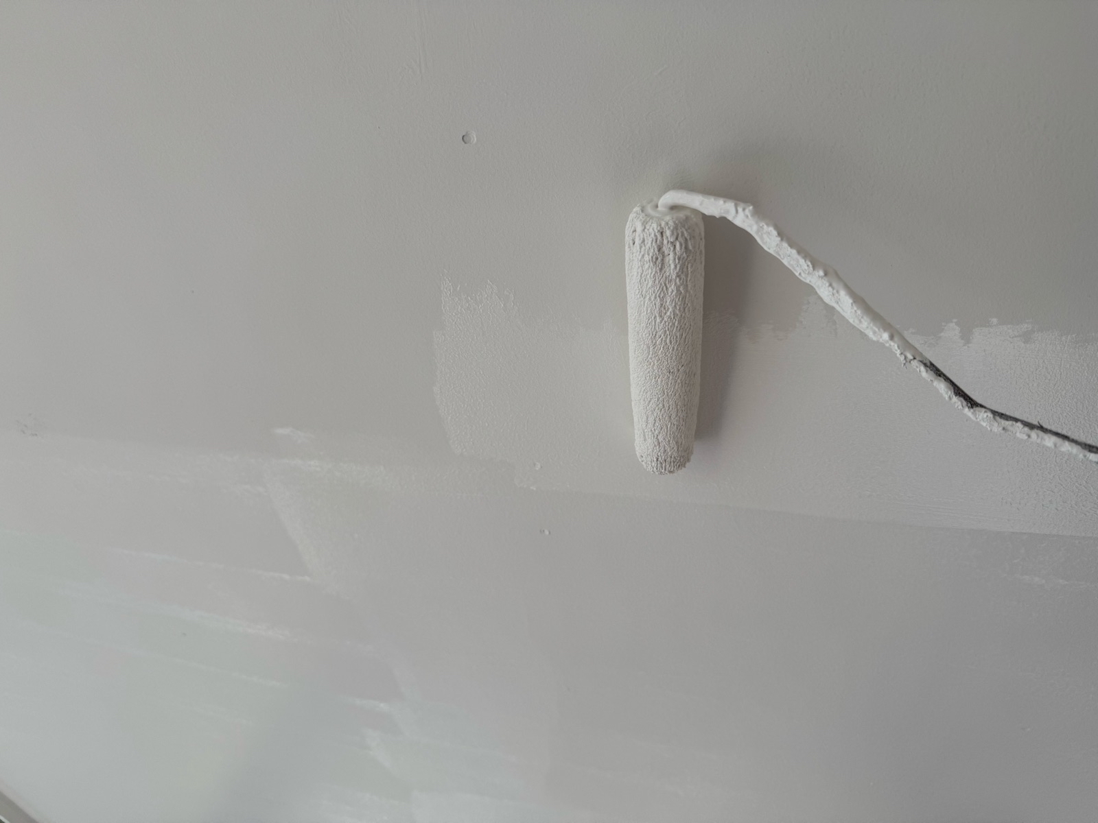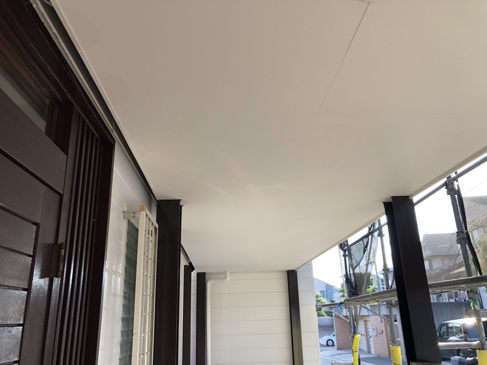 防カビ・防藻効果を持った軒天専用の水性塗料を使用し2回塗りしました。