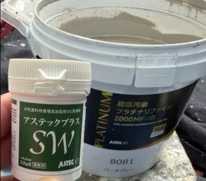 2.防カビ・防藻材の『アステックプラスSW』を、上塗り材に添加し攪拌します。