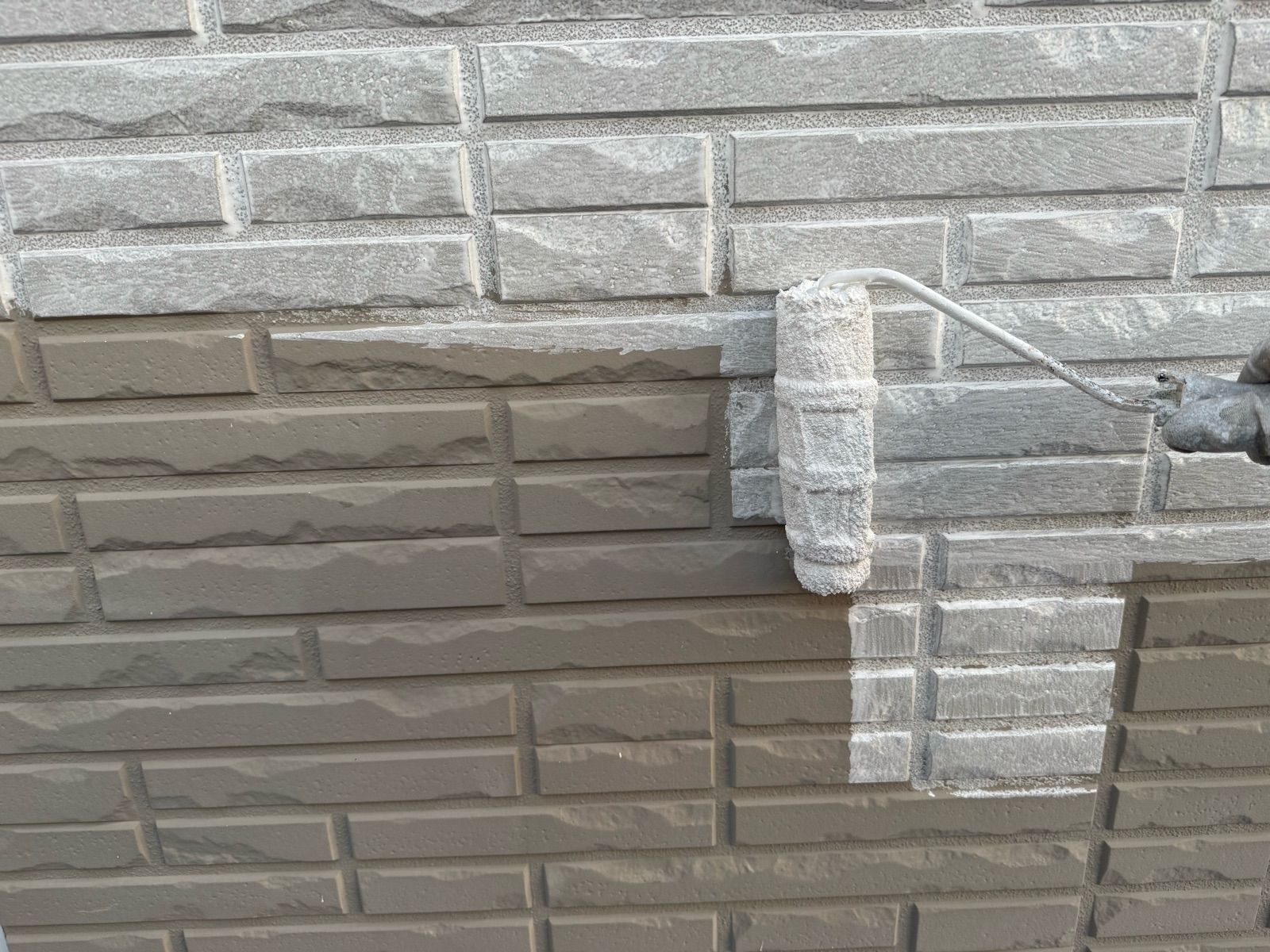 1.高圧洗浄機を使い外壁をきれいにしたあと、下塗り材を塗布していきます。