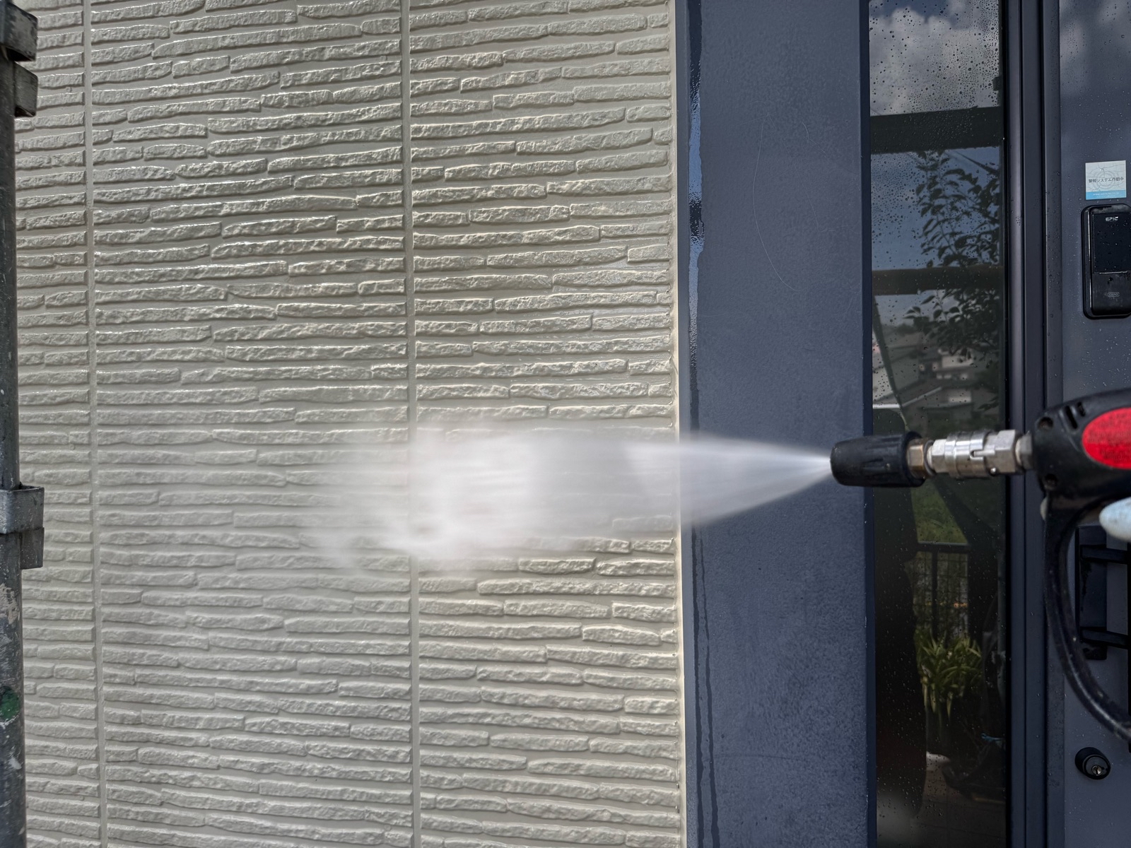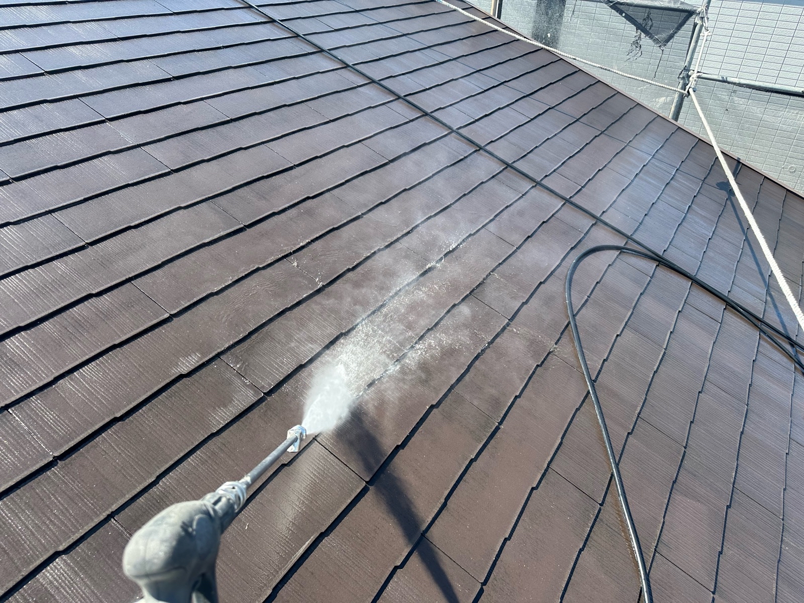 古い塗膜や苔・藻などの汚れを高圧洗浄機で洗い流します。錆や古い塗膜などはケレン作業で落とします。