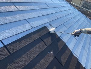 屋根・外壁を下塗り→中塗り→上塗りの順で塗装します。