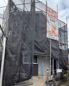 外壁上部や屋根を塗装する際は基本的に建物の周りすべてを囲います。