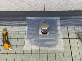 脱気筒設置:下地に含んだ水分を逃がし、水分による膨れを防止するために脱気筒を取り付けます。