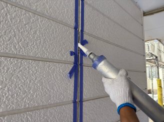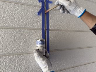 シーリング工事:シーリングの付きを良くするため、プライマーを塗布します。