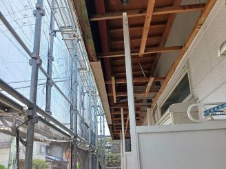 軒天補修:軒天の剥がれがあったためケイカル板自体の交換を行いました。
