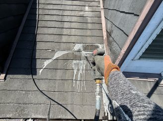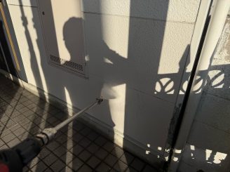 高圧洗浄:古い塗膜や砂埃等が残っていると施工不良につながるため丁寧に洗い流します。