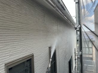 高圧洗浄:塗装前に高圧洗浄機で汚れを洗い落とします