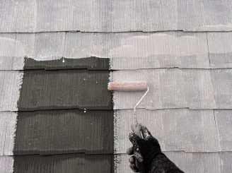 上塗り:高い遮熱効果のあるフッ素塗料「スーパーシャネツサーモF」で上塗りしました。