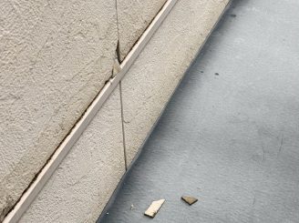 外壁補修前:ひび割れ部分から外壁が剥落してしまっている状態です。